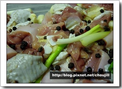 星期四用蔥蒜鹽巴跟黑胡椒粒先醃雞腿肉