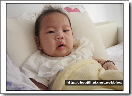 而我也暗自慶幸還好丁丁有一頭濃密的頭髮(↓出生第十二天照)