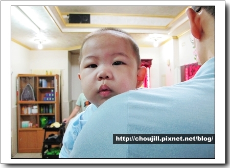 石頭(代表作膽以及頭殼堅硬),由剃頭師傅?寶寶剃掉頭發及眉毛後