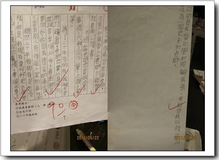 為了二十年後的我,我現在要用功課書,老師也要以身作則並且要孝順父母