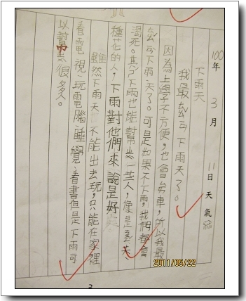 因為上學不方便,也會塞車,所以我最討厭下雨天了。