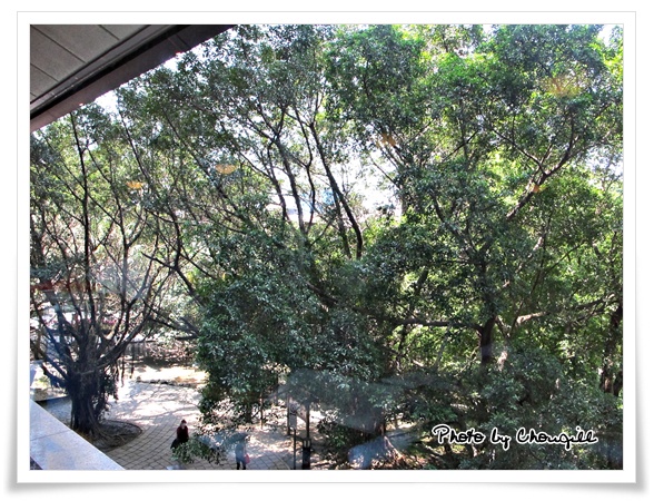 放眼看出去林蔭蔽天滿眼的綠意盎然,我很愛!