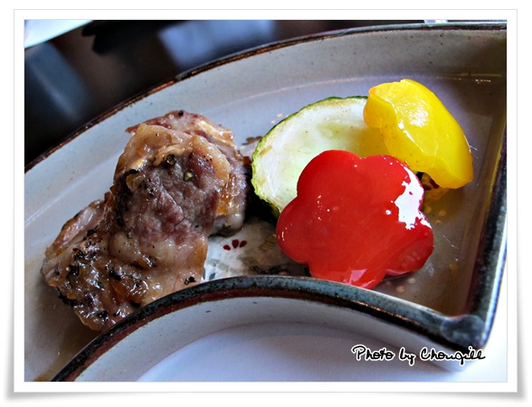 但老實講讓我驚豔的是甜椒下面的那片櫛瓜,也太多汁了吧!
